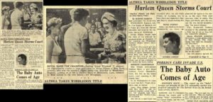 Althea played at Wimbledon for the first time in 1951, but over the next five years wasn’t able to win consistently. In 1956 she won 16 of her first 18 tournaments, including the French Open, her first title at a Grand Slam event. Though she and Angela Buxton won the Wimbledon doubles championship, victory in the singles eluded her again. After narrowly losing the 1957 Australian Open, she won every remaining match that year. Passing up the French Open’s clay court to focus on grass courts in England, she defeated Darlene Hard in the final at Wimbledon. “At last,” she said, “at last,” as she accepted the trophy from Queen Elizabeth II. She later wrote: “Shaking hands with the Queen of England was a long way from being forced to sit in the colored section of the bus going into downtown Wilmington, North Carolina.”