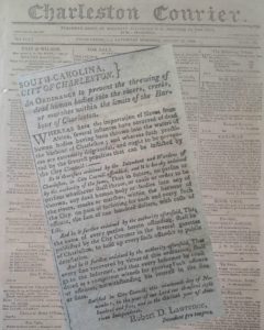 Ordinance Against Throwing Dead Bodies into Charleston’s Harbor and Tributaries. Charleston Courier, Aug. 16, 1806.