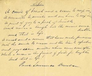 A handwritten and signed “fair copy” of Paul Laurence Dunbar’s most famous poem, “Life.”