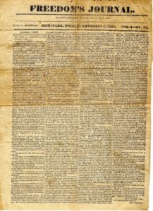 FREEDOM’S JOURNAL, First Black Owned and Operated American Newspaper (1827-1829). Founded by Rev. Peter Williams, Jr., and other free blacks the year slavery was abolished in New York.